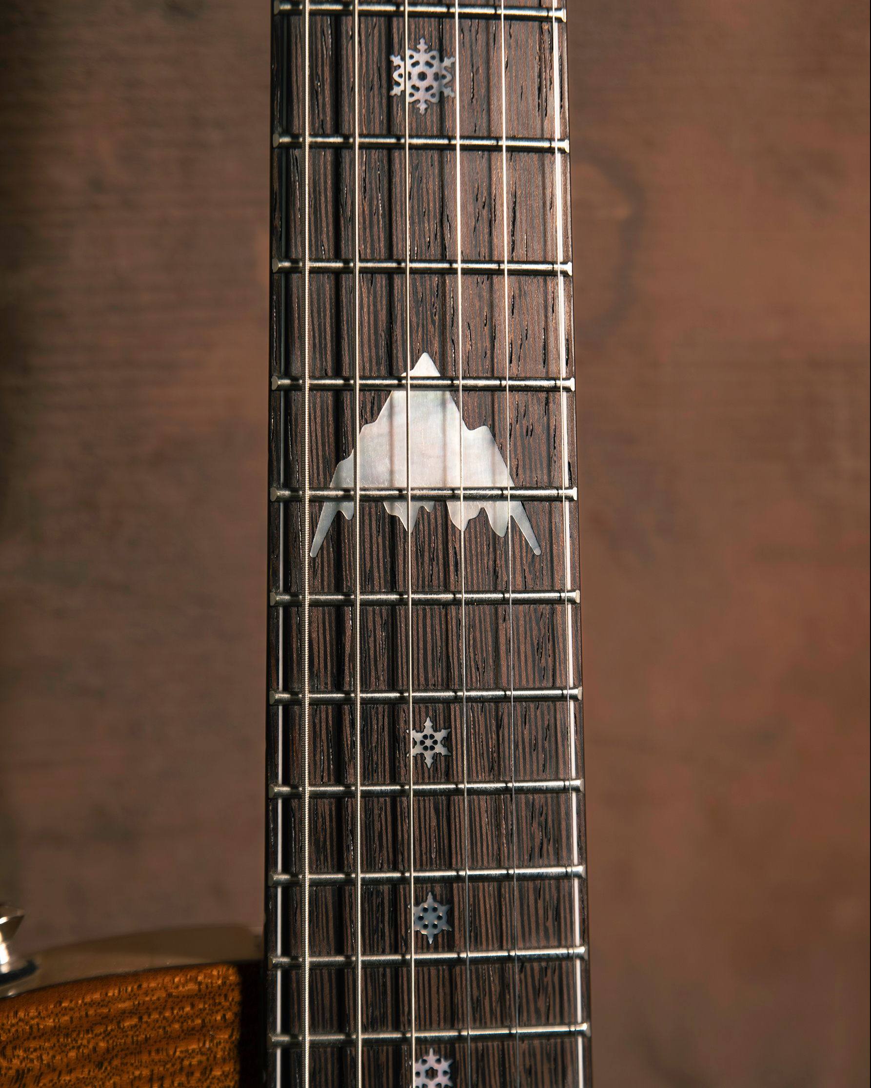 Built in the OM body style, this acoustic guitar encapsulates the creative blending of traditional lutherie and snowboard legacy.