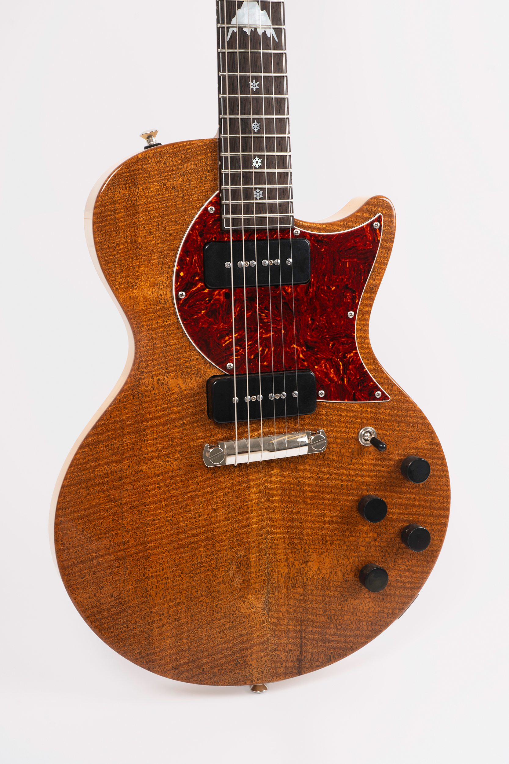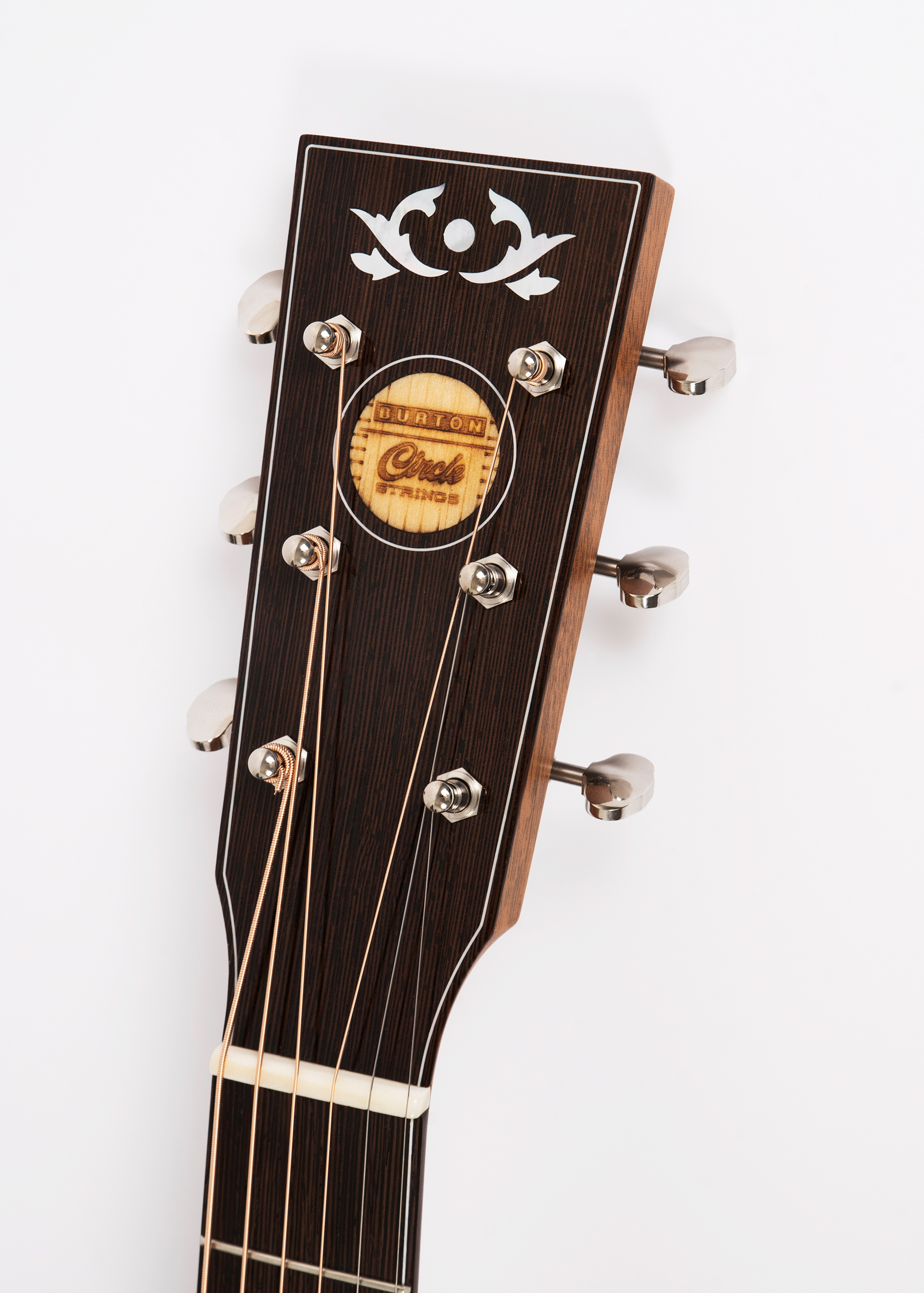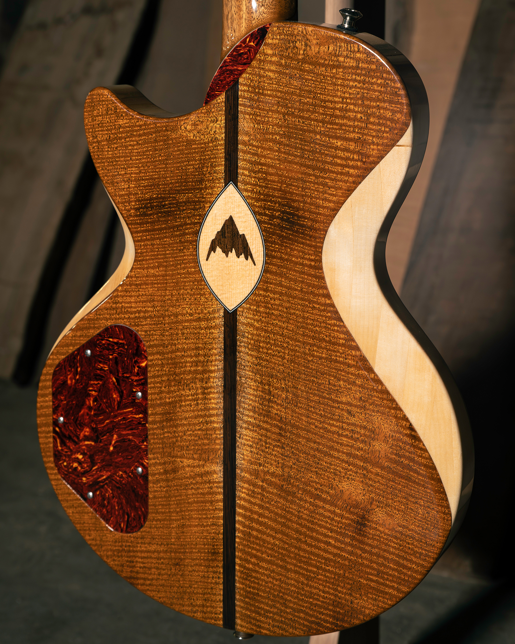 Burton’s Superfly II core forms the body of this instrument, capped with Mahogany Mama on the front and back. A natural finish exposes the core’s construction, offering a window into the materials typically hidden beneath opaque finishes.