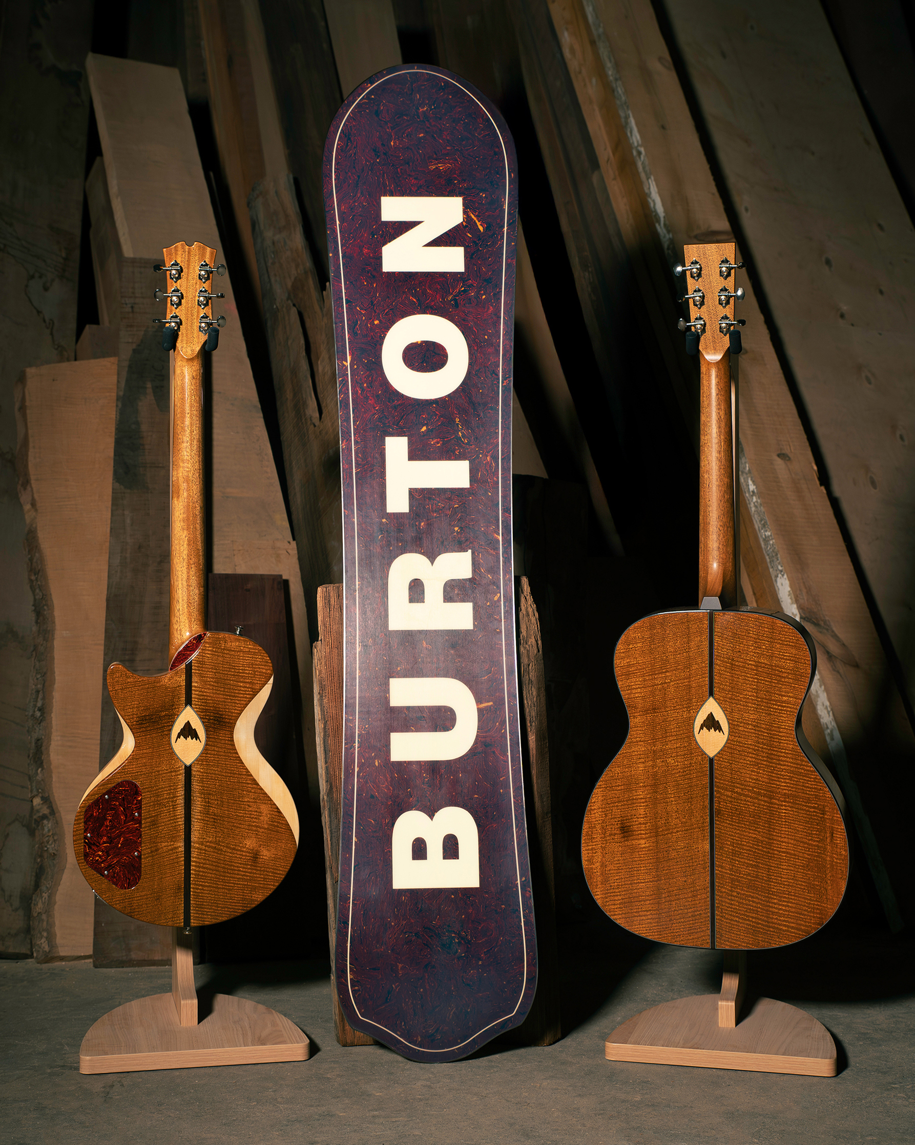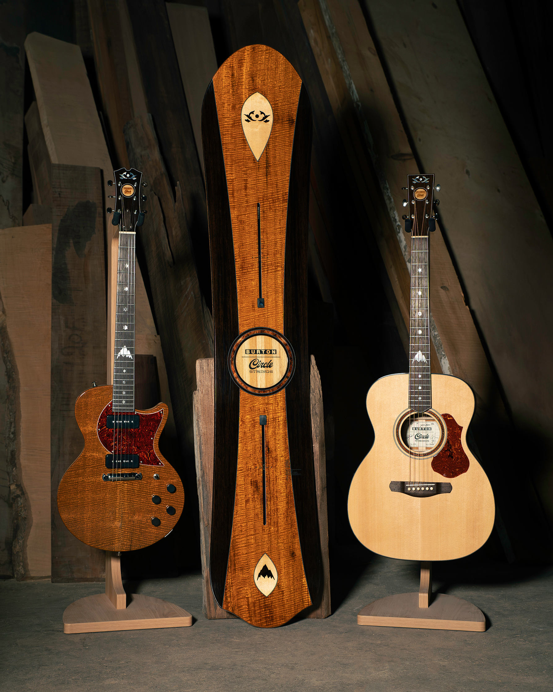 The result is a limited-edition set between Burton and Circle Strings that pairs a handcrafted acoustic and electric guitar with a snowboard; built from the same woods, shaped through shared visions and rooted in Burlington, Vermont.